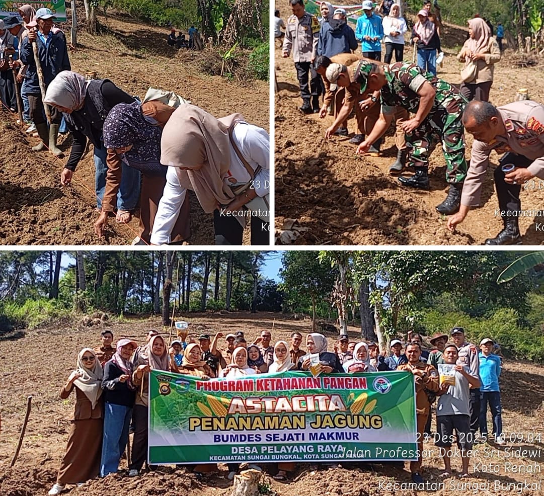 Hari ini, Selasa 23/12 Pemerintah Desa Pelayang Raya menggelar penanaman 4 kilo bibit jagung hibrida untuk pakan ayam diarea seluas 1 hektar bertempat di bukit sarang tupai, Dusun Sungai Akar sebagai wujud komitnya mendukung astacita Presiden RI Prabowo guna meningkatkan Ketahan Pangan.