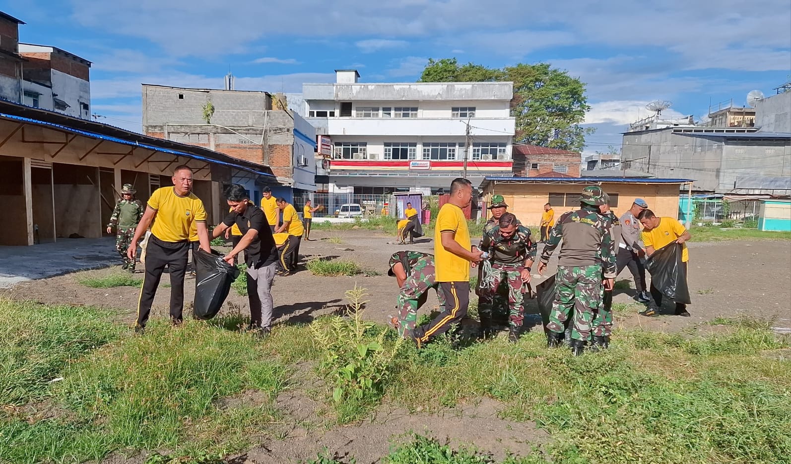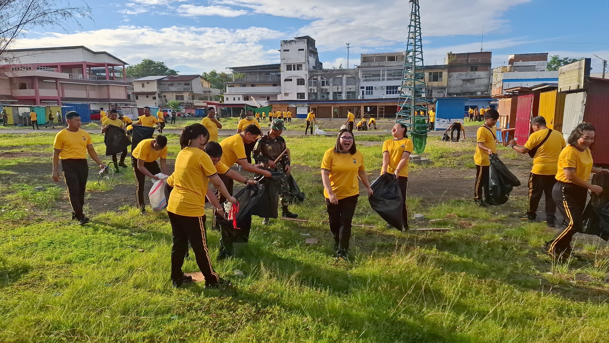 Ratusan Personil Polres Bitung bersama TNI dan Perumda Pasar di kerahkan untuk kegiatan korvei atau kerja bakti bersih-bersih di seputaran Pasar Cita Kota Bitung, dipimpin langsung Kapolres Bitung AKBP Albert Zai, S.I.K., M.H, Jumat (6/2/2026) pagi.