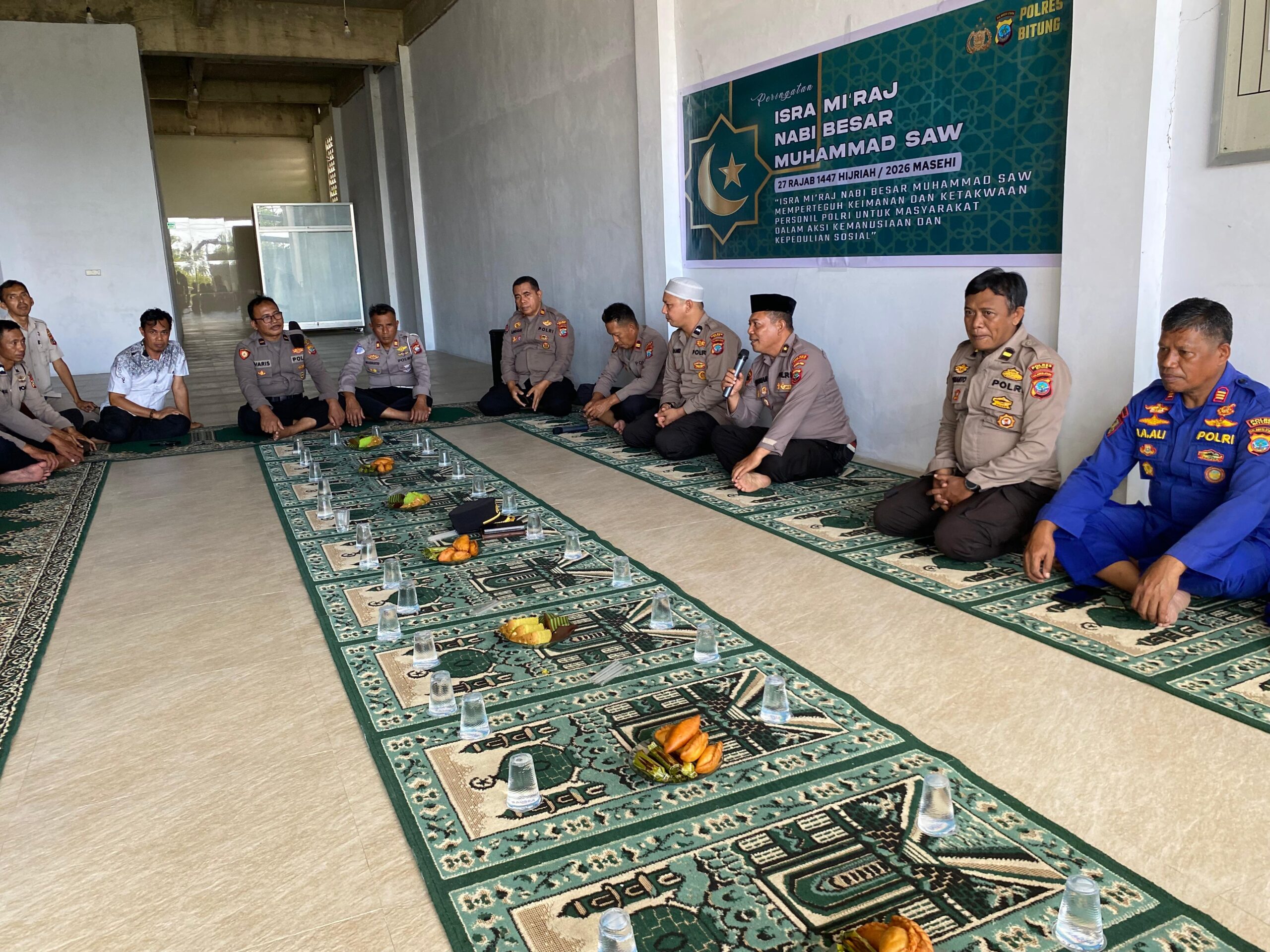 Polres Bitung menggelar peringatan Isra Mi’raj Nabi Besar Muhammad SAW 1446 Hijriah/2026 Masehi sebagai upaya memperkuat keimanan dan ketakwaan personel dalam menjalankan tugas pengabdian kepada masyarakat. Kegiatan ini berlangsung khidmat di Masjid As Salam Aspol Pinokalan, Jumat (16/1/2026), mulai pukul 09.00 Wita hingga selesai.