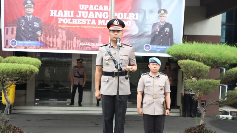 Kapolresta Manado Kombes Pol Irham Halid memimpin upacara dalam rangka memperingati Hari Juang Polri. Upacara tersebut digelar di halaman Mapolresta Manado, Kamis (21/8/2025) pagi.